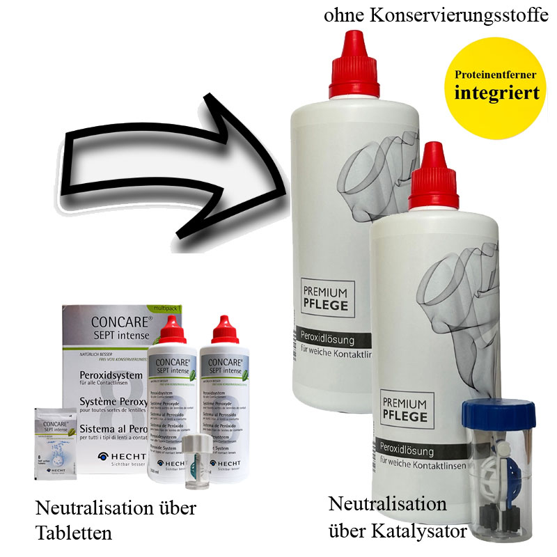 Die "Premium Pflege - Peroxid" ist ein einfach zu handhabendes Einstufen-Peroxid-System das für alle weichen Kontaktlinsen, auch Silikonhydrogel-Kontaktlinsen, geeignet ist.