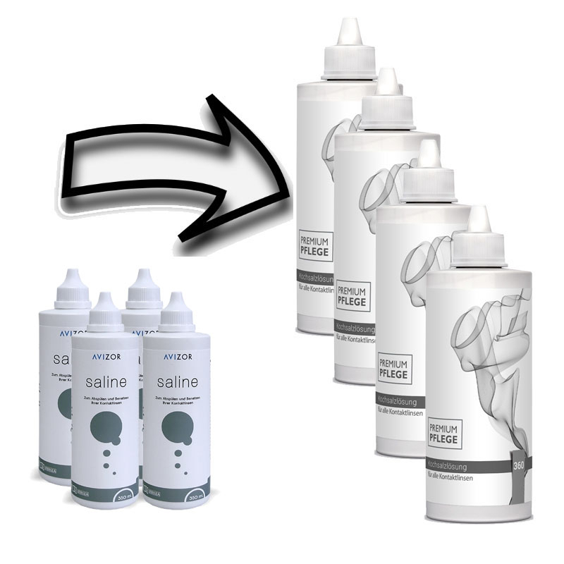 Aus Avizor Saline Kochsalzlösung 4 x 350ml wird Premium Pflege Kochsalzlösung 4 x 360ml.